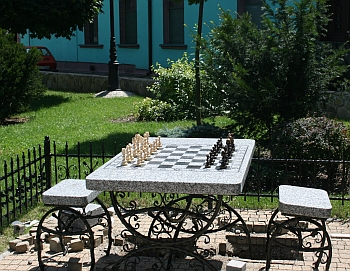 Na placu 3-go Maja i błoniach przy Al. Wolności, w miejscach przygotowanych wcześniej do tego celu, ustawiane są kamienne stoły szachowe. Forma stołów dopasowana jest do otoczenia.