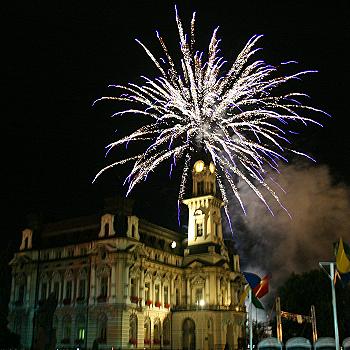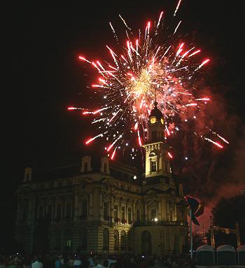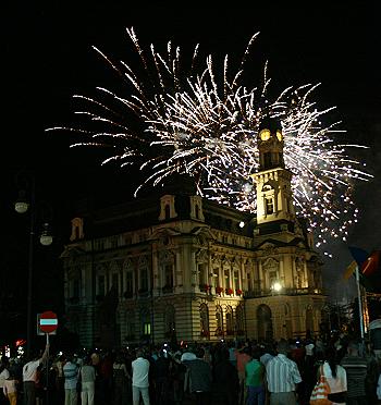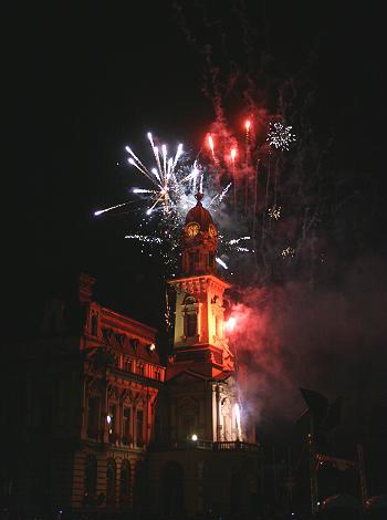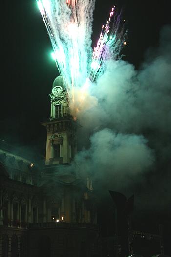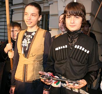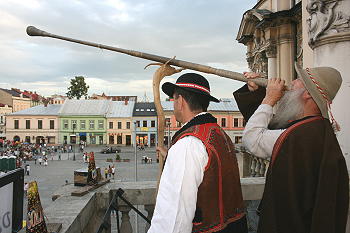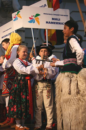 XVI Festiwal Święto Dzieci Gór rozpoczął się od wejścia dziecięcego korowodu na płytę sądeckiego Rynku. Uroczystemu orszakowi przewodził powóz, w którym pod ratusz przybyli organizatorzy imprezy. Z balkonu wieży ratuszowej popłynęły dźwięki wydobywane przez Józefa Brodę z ogromnej bazuny. Zanim rozpoczęto prezentacje poszczególnych zespołów, przybyłych do Rynku gości i mieszkańców miasta przywitał prezydent Ryszard Nowak. W chwilę później w ręce młodych artystów powędrowały symboliczne klucze do bram miasta i odtąd dzieci z różnych zakątków świata przejęły na tydzień władanie Nowym Sączem.