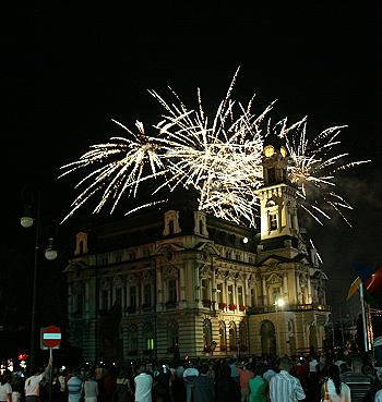 Prezentacje poszczególnych zespołów trwały do godziny 22.15, a następnie odbył się pokaz sztucznych ogni. Podczas pierwszego koncertu zaprezentowali się: „Piątkowioki”, zespół „Erro Bat” z Francji, „Mali Frydmanianie” i zespół „Dobrudia” z Bułgarii, „Mali Siedlecanie” i zespół „Eleoni” z Gruzji, „Mali Grojcowianie” i zespół „Citta' dei Templi” z Włoch, zespół z Michalczowej i zespół „Koco Racin” z Macedonii, „Mali Hamernicy” i zespół „Danza e Identidad” z Ekwadoru. Gościem specjalnym konceru inauguracyjnego był zespół „Polonia” z Chicago, który zaprezentował cykl polskich tańców narodowych.