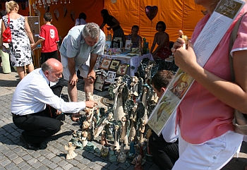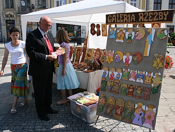 Goście odwiedzający stoiska rzemieślników i artystów z regionu, mogli zakupić rozmaite anielskie pamiątki ze sznurka, koronek, wosku i drewna, rzeźby, obrazy i malowidła na szkle. Motyw aniołów pojawił się nawet w biżuterii. W anielski klimat wprowadzał zwiedzających wiceprezydent Jerzy Gwiżdż – pomysłodawca Jarmarku Anielskiego, który również odwiedził kramy oraz z zainteresowaniem przyglądał się wystawionym zbiorom.