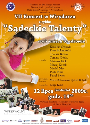 W niedzielę 12 lipca 2009 r., w wirydarzu klasztoru oo. Jezuitów w Nowym Sączu przy ul. Piotra Skargi 10, odbędzie się VII Koncert w Wirydarzu z cyklu "Sądeckie Talenty" czyli śmiech to zdrowie. Koncert rozpocznie się o godz. 19:00, a wystąpią w nim: Karolina Gwóźdź, Piotr Bolanowski, Tomasz Bulzak, Tomasz Górka, Mateusz Kicki, Maciej Kozak, Maciej Nieć, Piotr Piksa oraz Paweł Święs.