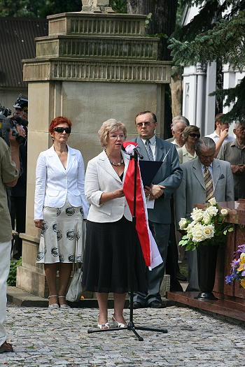 Na cmentarzu ksiądz prałat Stanisław Czachor odmówił modlitwę, a Janusz Michalik z Miejskiego Ośrodka Kultury, dbający o przebieg uroczystości zaprosił panią wiceprezydent Bożenę Jawor, aby wygłosiła okolicznościowe przemówienie.