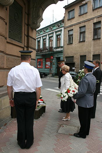 Około południa złożono także kwiaty przed tablicą upamiętniającą postać Naczelnika Polskich Sił Zbrojnych – Józefa Piłsudskiego. Tablica znajduje się na ścianie kamienicy, przy ulicy Dunajewskiego, w której miał niegdyś nocować Marszałek.