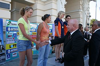 Ceremonia zakończenia 60 Mistrzostw w Slalomie Kajakowym odbyła się na płycie Rynku pod nowosądeckim ratuszem. Medale wręczali zawodnikom: prezydent Miasta Nowego Sącza Ryszard Nowak, prezes Polskiego Związku Kajakowego Ryszard Seruga oraz prezes KS START Krzysztof Szkaradek.