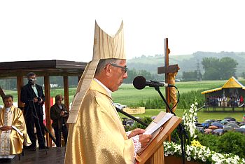 Prezydent Ryszard Nowak wraz z wiceprezydent Bożeną Jawor oraz samorządowcami z całej Polski uczestniczyli we mszy świętej, którą w asyście licznych duchownych na starosądeckich błoniach odprawili: arcybiskup Piero Marini i ordynariusz diecezji tarnowskiej ks. bp Wiktor Skworc.