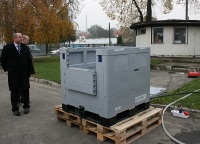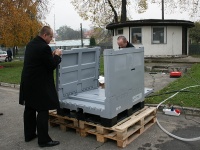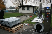 Na zakończenie zaprezentowano alternatywną formę zaopatrzenia miasta w wodę pitną w warunkach zagrożenia, przy wykorzystaniu urządzenia „WODOERKA”.