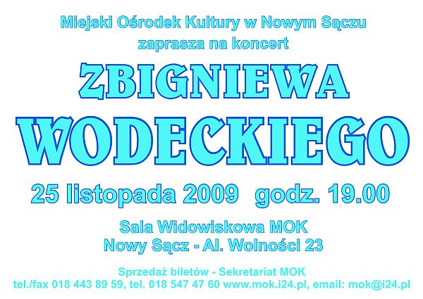 W środę 25 listopada o godz. 19.00 w MOK odbędzie się koncert Zbigniewa Wodeckiego.