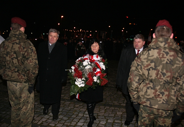 Po mszy św. uczestnicy obchodów 28. rocznicy wprowadzenia w Polsce stanu wojennego, przeszli pod pomnik „Solidarności”, gdzie złożono wieńce i wiązanki kwiatów.