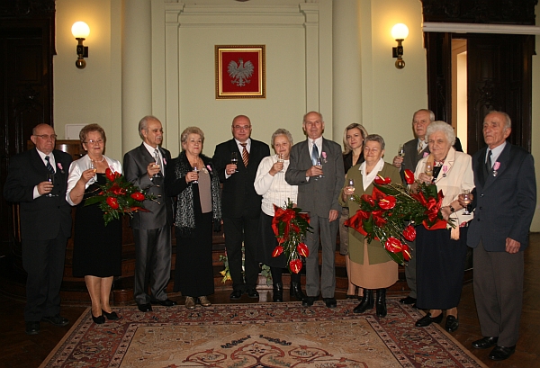 Prezydent Ryszard Nowak wraz z Kierownikiem Urzędu Stanu Cywilnego Małgorzatą Antkiewicz-Wójs złożyli jubilatom gratulacje oraz życzenia zdrowia i pomyślności. Następnie prezydent odznaczył pary małżeńskie medalami "Za długoletnie pożycie małżeńskie" przyznanymi przez Prezydenta RP Lecha Kaczyńskiego oraz wręczył upominki, albumy i kwiaty.