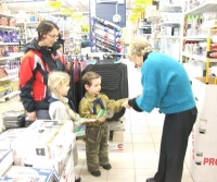 Aby świecić przykładem ISKIERKI zebrały ze swoich domów popsuty sprzęt elektroniczny, stare żarówki, baterie i zawiozły je w miejsca, w które można oddawać bezpiecznie takie artykuły. I tak oto sprzęt komputerowy trafił do przeznaczonego na ten cel pojemnika w przedsiębiorstwie SITA, a żarówki i baterie do marketu przemysłowego. Dzięki uprzejmości Pani Dyrektor tegoż marketu zuchy mogły rozdać ulotki, z informacją o akcji ZSEE klientom sklepu. Ulotki i plakaty rozdawały również mieszkańcom Nowego Sącza, których spotykali na ulicach miasta. Trzeba przyznać, że większość mieszkańców chętnie i z zainteresowaniem brała ulotki.