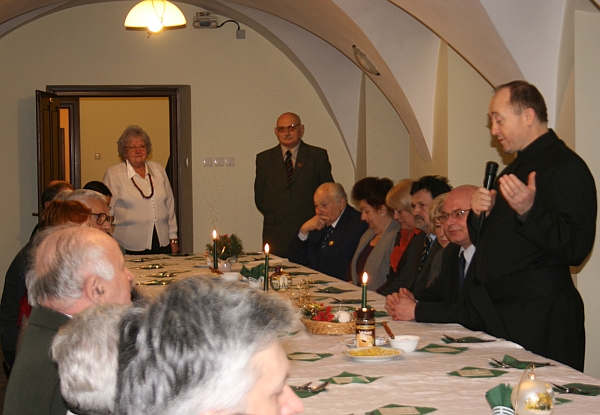 Spotkanie rozpoczęło się wspólną modlitwą przed cudownym obrazem Matki Boskiej Pocieszenia. Następnie prezes TMLiKPW Bolesław Biłowus zaprosił gości na poczęstunek. O. Andrzej Baran SJ – proboszcz parafii Świętego Ducha, modląc się za zebranych, poświęcił opłatki, a prezydent Ryszard Nowak złożył wszystkim życzenia mówiąc: „Jesteście dla mnie kwintesencją polskości, Polakami o ogromnych wartościach patriotycznych i wielkiej miłości do ojczyzny. Życzę Wam dużo zdrowia, pomyślności i żebyśmy się spotkali za rok w tym samym gronie” – mówił prezydent Ryszard Nowak. Spotkanie było również okazją do podziękowań złożonych na ręce prezydenta za dobre zarządzanie miastem: "Miasto pięknieję, odnawiane są ulice, elewacje budynków, czujemy, że to miasto żyje i się rozwija. Dziękujemy!" - mówił o. Andrzej Baran.