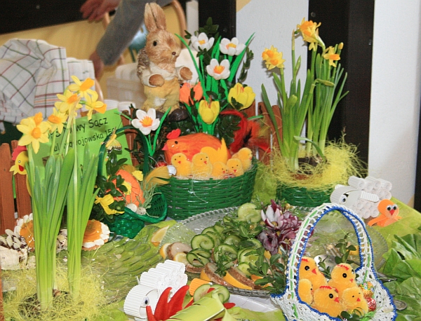 Szynka w kształcie prosiaka, pasztet z królika, tradycyjne mazurki, faszerowane jajka i kolorowe koguciki, kurczaki oraz pyszne „wielkanocne baby” – takie m.in. potrawy prezentowano podczas VIII Konkursu Palm i Stołów Wielkanocnych, jaki odbył się w Domu Pomocy Społecznej przy ulicy Nawojowskiej 155.