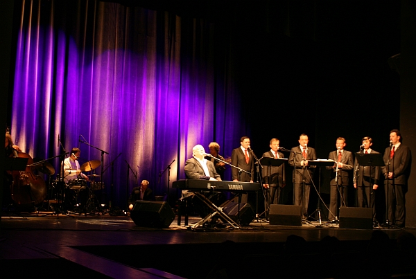 Stanisław Soyka – śpiewak, pianista, kompozytor, który już od lat należy do grona największych artystów polskiej sceny muzycznej, wystąpił wczoraj z koncertem dedykowanym Janowi Pawłowi II z okazji V rocznicy śmierci naszego Wielkiego Rodaka. Ten nietuzinkowy artysta, na deskach Małopolskiego Centrum Kultury SOKÓŁ, zaprezentował swoje kompozycje muzyczne do słów Tryptyku Rzymskiego. Na scenie towarzyszył mu poznański chór męski Affabre Concinui oraz zespół SOYKA KWINTET + w składzie: Przemek Greger – gitara elektryczna, Jakub Sojka – perkusja, Zbyszek Brysiak – instrumenty perkusyjne, Marcin Lamch – kontrabas.