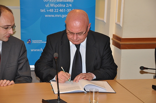 Podpisanie umowy odbyło się w siedzibie Ministerstwa Rozwoju Regionalnego w Warszawie podczas uroczystego podpisania umów o dofinansowanie dla projektów sektora transportowego Programu Infrastruktura i Środowisko. W spotkaniu, obok przedstawicieli beneficjentów, udział wzięli: minister rozwoju regionalnego Elżbieta Bieńkowska, wiceminister Adam Ździebło, wiceminister infrastruktury Radosław Stępień, dyrektor Centrum Unijnych Projektów Transportowych Anna Siejda i prezes zarządu Narodowego Funduszu Ochrony Środowiska i Gospodarki Wodnej Jan Rączka. Minister Elżbieta Bieńkowska poinformowała, że konkurencja była niezwykle duża. „Do programu zgłoszonych zostało 49 wniosków, z których dofinansowanie uzyskało tylko 12 najlepiej przygotowanych” – podkreśliła minister. Wśród nich znalazł się również wniosek przygotowany przez Nowy Sącz.