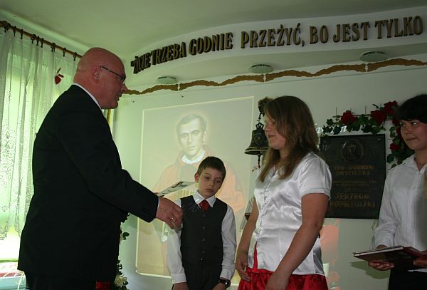 Święto Szkoły było okazją do przekazania dyplomów i wyróżnień dla zwycięzców konkursów międzyszkolnych związanych z życiem i działalnością bł. ks. Jerzego Popiełuszki.