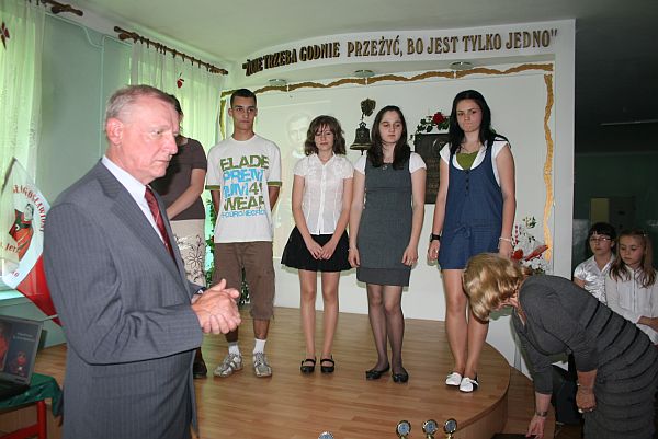 Prezydent Ryszard Nowak wziął udział w uroczystościach Święta Szkoły Podstawowej nr 6. Tegoroczne uroczystości były szczególne, ponieważ 6 czerwca, w Dniu Święta Dziękczynienia w Warszawie w grono błogosławionych włączony został patron sądeckiej szkoły ks. Jerzy Popiełuszko. Dyrektor szkoły Halina Stanek witając gości przypomniała słowa - apel wypowiedziany przez ks. Jerzego Popiełuszkę „Zło dobrem zwyciężaj! Ten tylko może zwyciężać zło, kto sam jest bogaty w dobro…”. Jesteśmy świadomi - mówiła dyrektor szkoły, że imię Patrona zobowiązuje do życia zgodnego z Ewangelią i wartościami chrześcijańskimi. Chcemy więc, by nasze życie było nieustannym dobrem czynionym naszym bliskim, znajomym i innym ludziom, z którymi się spotykamy. Na co dzień staramy się robić wszystko, by nasze deklaracje nie okazały się słowami bez pokrycia. W duchu nauki głoszonej przez ks. Jerzego wychowujemy młode pokolenie, uczymy szacunku do drugiego, zwłaszcza niepełnosprawnego człowieka i godnie reprezentujemy szkołę na zewnątrz - dodała Halina Stanek. Następnie odbyła się akademia przygotowana przez uczniów szkoły. Słowa ks. Popiełuszki cytowane przez uczniów, przeplatane piosenkami dostarczyły wielu wzruszeń. Prezydent Ryszard Nowak dziękując zwrócił się do młodzieży i podziękował za te piękne, wzruszające słowa, za przypomnienie życia ks. Jerzego - wzoru człowieka, który wiarę, prawdę, dobro, wolność i godność drugiego człowieka umiłował do końca.
