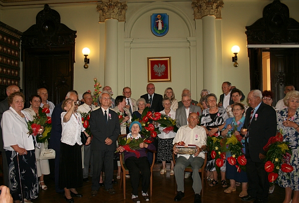 Prezydent Ryszard Nowak gratulując parom Złotych i Szmaragdowych Godów, życzył dużo zdrowia, miłości, szczęścia oraz spokoju na dalsze lata wspólnego pożycia małżeńskiego. Następnie wręczył jubilatom "Medale za długoletnie pożycie małżeńskie" przyznane przez Prezydenta RP oraz upominki, albumy i kwiaty. Najlepsze życzenia przekazała jubilatom również Kierownik Urzędu Stanu Cywilnego Małgorzata Antkiewicz-Wójs.