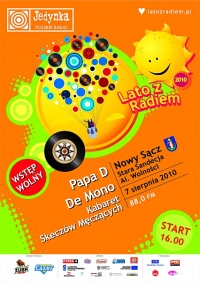 Papa D., Kabaret Skeczów Męczących oraz występ zespołu De Mono – to główne, ale nie jedyne atrakcje, jakie czekają na mieszkańców Nowego Sącza w przyszłą sobotę 7 sierpnia 2010 r. Nasze miasto po raz kolejny znalazło się na trasie koncertowej „Lata z Radiem”. Impreza rozpocznie się o godz. 16.00 na placu Starej Sandecji przy Al. Wolności w Nowym Sączu.