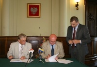W podpisaniu porozumienia uczestniczyli: prezes MPK Andrzej Górski, Jadwiga Kusiak Skarbnik Miasta, Piotr Witek Przewodniczący Rady Gminy Kamionka Wielka oraz Maria Wiatr Skarbnik Gminy.