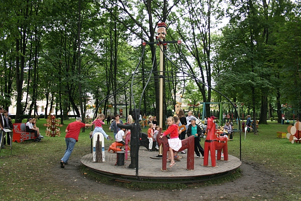 Rzeczy małopolskie z plenerowej wystawy to rezultat inspirującej zabawy dizajnem i etnografią. Powstały w trakcie kilkumiesięcznej pracy projektantów i rzemieślników jako interaktywne mega-zabawki miejskie dla dzieci i dorosłych. Są wynikiem przetworzenia tradycyjnych motywów zdobniczych oraz wytworów rzemieślniczych, charakterystycznych dla Małopolski. Stanowią wyraz szacunku dla dawnych technik malowania, wycinania, wyplatania czy rzeźbienia w drewnie. Za bezpośrednią inspirację projektantom posłużyły obiekty z kolekcji Muzeum Etnograficznego w Krakowie. Artystycznie przetworzone, przeskalowane i przeniesione na grunt współczesności pokazują, jak atrakcyjna może być przestrzeń miejska, jeśli w sposób przemyślany wprowadzić do niej dizajn inspirowany etnografią. I jak atrakcyjna dla nas, ludzi XXI wieku, jest kultura regionalna, jak wyrazista i pociągająca. Na wystawie “Rzecz małopolska” doświadczyć jej można w najlepszy z możliwych sposobów – w interakcji, w zabawie i w ruchu.Szczególnie godna polecenia jest karuzela – menażeria. Inspirowana zabawkami ludowymi z terenu Małopolski i figurkami pochodzącymi z Warsztatów Krakowskich, powstała z tęsknoty za zabawą i z nieprzemijającej fascynacji ruchem. Amatorzy szybowania niech nie przegapią huśtawek o wdzięcznych nazwach: “Turbodoładowanie” czy “Rękawkowy odlot”. Są to zabawki inspirowane miniaturkami huśtawek odpustowych, dekorowane motywami zaczerpniętymi ze zdobnictwa zabawek Warsztatów Krakowskich. Wrażliwych na piękno natury z pewnością zachwycą dekorowane motywami roślinnymi skrzynie-ławki oraz bajkowy etnograficzny ogród botaniczny, zbudowany z wyimaginowanych roślin, powstałych z przetworzenia ornamentów kwiatowych, obecnych na gorczańskich skrzyniach wiannych. “My, współcześni artyści, boimy się oczywistości – mówi kurator wystawy, Olaf Cirut – Kiedy jeździmy po Małopolsce, zachwycamy się chałupami malowanymi na niebiesko. Ale kto z nas wymalowałby tak własny dom? Wstydzimy się czegoś, co głęboko tkwi w naszych genach. Wszak ogromny procent naszego społeczeństwa ma proweniencję chłopską. Mam nadzieję, że “Park doświadczeń kulturowych” pomoże przełamać strach przed oczywistymi źródłami naszej współczesności.” Prezentacja wystawy na Plantach Miejskich w Nowym Sączu potrwa do 15 sierpnia.