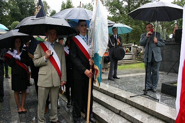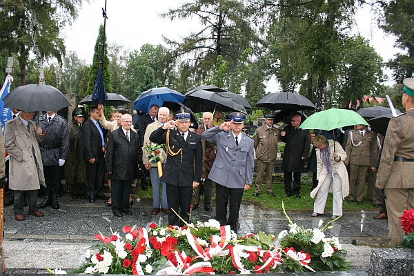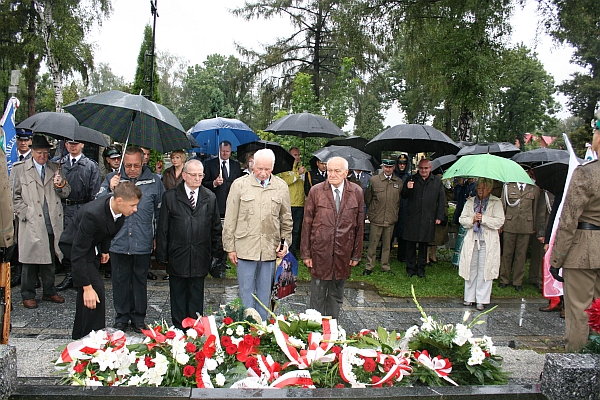 Kwiaty pod pomnikiem poległych żołnierzy złożyli: poseł Andrzej Czerwiński, prezydent Ryszard Nowak wraz z wiceprezydent Bożeną Jawor, starosta Jan Golonka, wiceprzewodniczący Rady Miasta Stefan Chomoncik oraz radni: Bogumiła Kałużny i Grzegorz Dobosz, kombatanci, delegacje szkół, przedstawiciele Wojska Polskiego, Policji, Straży Pożarnej i Straży Miejskiej.