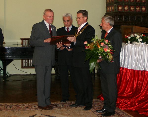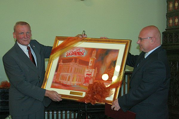 Następnie prezydent wręczył Andrzejowi Szkaradkowi pamiątkowy obraz, a radni uhonorowali lidera sądeckiej „Solidarności” grawertonem.