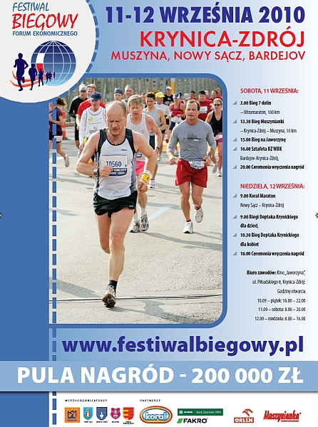 Już w najbliższy weekend 11-12 września w Krynicy-Zdroju, Muszynie, Nowym Sączu i Bardejowie odbędzie się Festiwal Biegowy Forum Ekonomicznego. W programie Festiwalu przewidziane są biegi dla doświadczonych maratończyków (Koral Maraton, Ultramaraton - Bieg Siedmiu Dolin), a także dla tych, którzy dopiero rozpoczynają swoją przygodę z bieganiem – Biegi Deptaka Krynickiego. Każdy amator biegania znajdzie dystans dla siebie, o odpowiedniej długości i skali trudności.