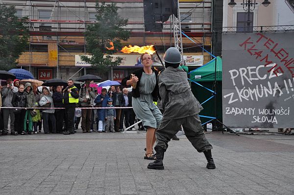 W sobotę, 18 września o godz. 20.00 w ramach obchodów 30. rocznicy powstania NSZZ „Solidarność” na sądeckim Rynku wystawione zostanie widowisko plenerowe zat. „Sierpień 1980 – sierpień 2010” w wykonaniu teatru ”W Przestrzeni”. Spektakl przedstawia historię 7 osób, które poddawane są represjom aparatu państwa: MO, SB, ZOMO i zmuszane są do uległości. Każda z osób opowie swoją historię prześladowania i niezłomności. Każda z nich będzie miała inny status społeczny, i tak będzie: nauczycielka, dwoje studentów, hutnik, stoczniowiec, kierowca, bard (śpiewak-poeta). Bohaterowie w pojedynkę nie będą mogli nic zrobić, będą nieskuteczni. Ale z chwilą zjednoczenia się i założenia związków zawodowych będą odnosić coraz to większe sukcesy. Finałem spektaklu będzie fragment kazania Jana Pawła II i całkowity upadek komunizmu dający początek przemianom w Europie. W spektaklu wykorzystane są efekty świetlne i dźwiękowe. Widzowie zobaczyć będą mogli fragmenty kronik filmowych z lat 1960-82.