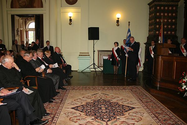 Prezydent Nowego Sącza Ryszard Nowak witając wszystkich licznie zgromadzonych w sali ratuszowej zażartował "dzisiaj historia zatoczyła koło, sądecki ratusz po raz drugi okupowany jest przez >>Solidarność<<, ale w zupełnie innych czasach i z wielką przyjemnością ten ratusz państwu oddajemy" - powiedział prezydent. Następnie prezydent podkreślił, że dzisiaj "Wszyscy, ci starsi, ci młodsi, wreszcie najmłodsi podkreślają zgodnie, że powstanie Solidarności zmieniło bieg historii Polski i Europy.