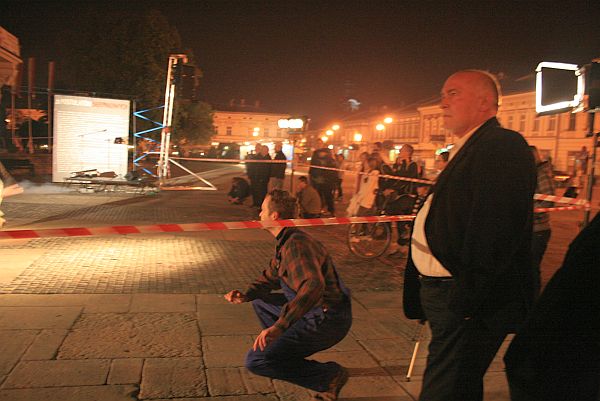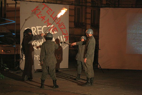 Wieczorem na sądeckim Rynku Teatr "W Przestrzeni" zaprezentował spektakl zatytułowany "Sierpień 1980- sierpień 2010"