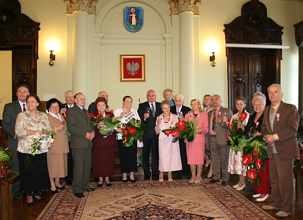 Prezydent Ryszard Nowak gratulował parom małżeńskim świętującym Złote Gody. Na uroczystości obecna była również para obchodząca Szmaragdowe Gody - państwo Irena i Jerzy Batkowscy. Jubileusz 50-lecia pożycia małżeńskiego świętowali państwo Danuta i Józef Gałęziowscy, Anna i Tadeusz Machajowie, Wanda i Czesław Mikowie, Zofia i Józef Mirkowie, Maria i Andrzej Olchawowie, Helena i Michał Piechowie, Stanisława i Eugeniusz Sierotowiczowie oraz Barbara i Włodzimierz Taraskowie.