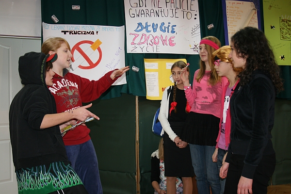 Podczas dzisiejszego spotkania, z okazji przypadającego wczoraj Światowego Dnia Walki z Tytoniem, uczniowie Gimnazjum nr 3 zaprezentowali etiudy teatralne i programy dotyczące profilaktyki nikotynowej.