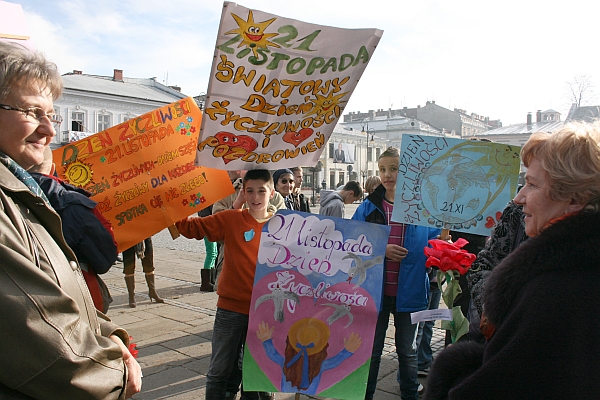 Uczestnicy imprezy zachęcali przechodniów do aktywnego włączania się w obchody tego święta prosząc ich o układanie puzzli z hasłami promującymi życzliwość. Każdy, kto ułożył hasło otrzymywał „Serce Życzliwości”. Młodzież rozdawała sądeczanom papierowe kwiaty, jabłka z okolicznościowymi tekstami oraz serduszka odblaskowe przekazane przez Małopolski Ośrodek Ruchu Drogowego w Nowym Sączu. Członkowie Szkolnego Koła Caritas zachęcali do zabawy w kolory. Zamiast nazw kolorów wykrzykiwali pozytywne słowa kojarzone z życzliwością.