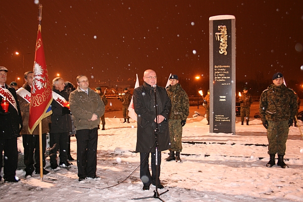 „13 grudnia 1981 roku władza komunistyczna wyprowadziła przeciwko społeczeństwu 100 tysięcy wojska, 40 tysięcy milicjantów, 20 tysięcy esbeków, nie licząc ormowców i tajnych współpracowników, komuniści nie zawahali się strzelać do robotników” - mówił Andrzej Szkaradek.