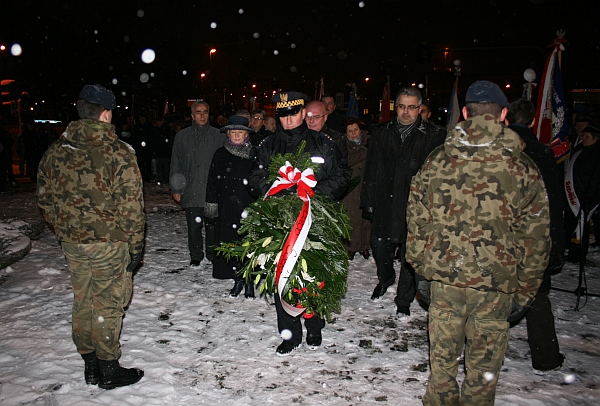 Po uroczystościach kościelnych uczestnicy obchodów 29. rocznicy wprowadzenia stanu wojennego przeszli pod pomnik „Solidarności”, gdzie złożono wieńce i wiązanki biało-czerwonych kwiatów. Prezydent Ryszard Nowak powiedział m.in. „Honorowanie dzisiaj generała Jaruzelskiego, twórcy stanu wojennego, to znak, że z Polską dzieje się coś niedobrego”. Dodał również, że cieszy się bardzo widząc z roku na rok coraz więcej młodzieży, co świadczy o tym, że młodzi ludzie pamiętają o bolesnych wydarzeniach sprzed lat.