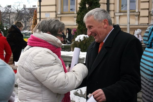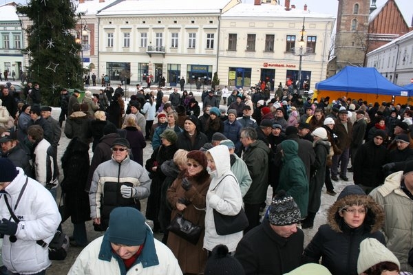 Na płycie Rynku pojawili się m.in. wiceprezydenci: Bożena Jawor i Jerzy Gwiżdż, poseł Arkadiusz Mularczyk, sądeccy radni wraz z Przewodniczącym Rady Miasta Jerzym Wituszyńskim oraz ks. prałat Jan Piotrowski, który poświęcił opłatki.