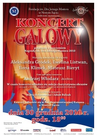 W najbliższy czwartek, 30 grudnia 2010 roku, podczas Koncertu Galowego w sądeckim ratuszu, Fundacja im. Dra Jerzego Masiora wręczy po raz kolejny nagrodę za wybitne osiągnięcia w zakresie artystycznym w 2010 r. Nagroda przyznawana jest młodym artystom za konkretne dokonania indywidualne lub zespołowe w zakresie muzyki, plastyki, twórczości literackiej, teatralnej, filmowej albo innej dziedziny sztuki, która zasługuje na to szczególne wyróżnienie.