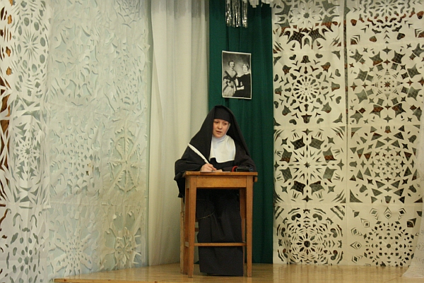 Następnie zaproszeni goście, wśród których znalazła się wiceprezydent Bożena Jawor oraz wierni z parafii wysłuchali referatu pt. „Zawsze byłam szczęśliwa”, podczas którego siostra Wawrzyna - Matka Generalna Zgromadzenia Sióstr Niepokalanego Poczęcia NMP (CSIC) przedstawiła życiorys Błogosławionej Matki Marceliny Darowskiej. Również uczennice szkoły sióstr niepokalanek przygotowały okolicznościowy program artystyczny pt. ”Wspomnienia Irenki”, który bardzo podobał się zebranym. Oklaskom nie było końca.