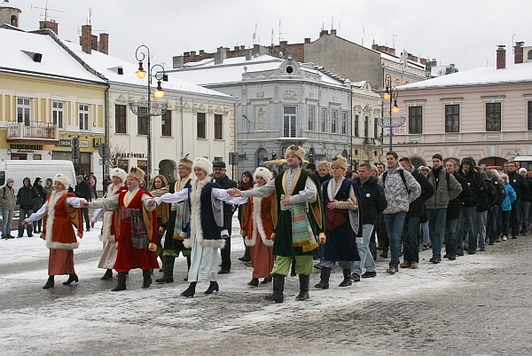 Poloneza na Rynku tańczono trzeci raz, ale takiego perfekcyjnego wykonania tego tańca, przy takiej ilości osób, bez wcześniejszych prób, jeszcze nie było. Układ taneczny, który przygotował Roman Piechociński zachwycił sądeczan, którzy zebrali się by podziwiać tańczącą młodzież.