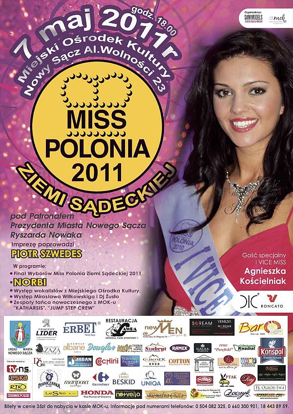 7 maja 2011 r. w Miejskim Ośrodku Kultury odbędzie się finał Wyborów Miss Polonia 2011 Ziemi Sądeckiej. W trakcie finału zaplanowano wiele atrakcji. Występy wokalistów MOK-u, Mirosława Witkowskiego oraz Dj Żusto, zespołów tańca nowoczesnego Katharsis i Jump Step Crew.