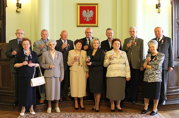 Następnie odznaczył małżonków "Medalami za długoletnie pożycie małżeńskie" przyznanymi przez Prezydenta RP. Pary w prezencie otrzymały również kwiaty, upominki oraz pamiątkowe albumy.