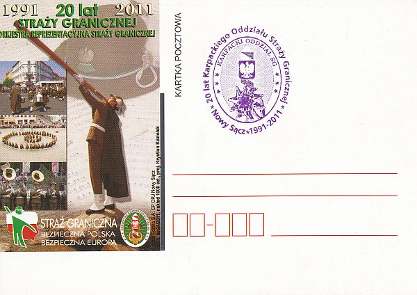 Z okazji 20. rocznicy powstania Karpackiego Oddziału Straży Granicznej w Nowym Sączu, spadkobiercy Karpackiej Brygady WOP i 1. Pułku Strzelców Podhalańskich, oraz rocznicy powstania Orkiestry Reprezentacyjnej Straży Granicznej, Poczta Polska w Nowym Sączu wydała 2 okolicznościowe kartki pocztowe i pamiątkowy stempelek filatelistyczny.
