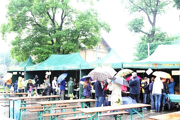 W strugach deszczu, na boisku sportowym Szkoły Podstawowej Nr 8 w Nowym Sączu, odbył się III Parafialny Festyn Charytatywno-Rekreacyjny pod hasłem „Z sercem na dłoni” organizowany przez parafię Najświętszego Serca Pana Jezusa w Nowym Sączu.
