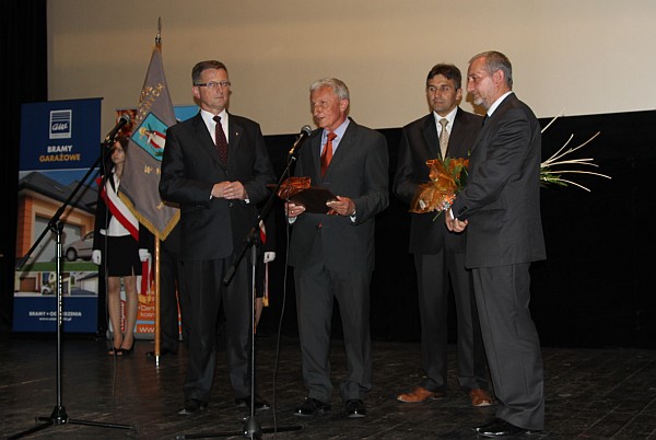 Przewodniczący Rady Miasta Jerzy Wituszyński wraz z radnymi - Arturem Czerneckim i Januszem Kwiatkowskim przekazali dyrektorowi pamiątkowy grawerton.
