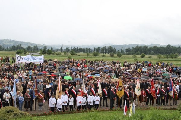W uroczystej mszy św., której przewodniczył kard. Stanisław Ryłko – przewodniczący Papieskiej Rady ds. Świeckich, uczestniczyła wiceprezydent Bożena Jawor. W celebrze uczestniczyli również ordynariusz diecezji tarnowskiej bp Wiktor Skworc oraz biskupi: Władysław Bobowski, Andrzej Jeż i Wiesław Lechowicz. Biskup Wiktor Sworc, witając wiernych, nawiązał do 12. rocznicy wizyty Ojca Świętego na Sądecczyźnie: „Wracamy wiernie od dwunastu już lat, zawsze w trzecią niedzielę czerwca, kiedy kościół tarnowski obchodzi Dzień Rodziny. Wracamy niezależnie od tego czy świeci słońce czy pada deszcz, a przeważnie pada deszcz, tak, jak to było 16 czerwca 1999 roku, kiedy tutaj był Jan Paweł II Wielki. I nadal będziemy trwać w modlitwie o kanonizację bł. Jana Pawła II” – zapewnił ordynariusz diecezji tarnowskiej.