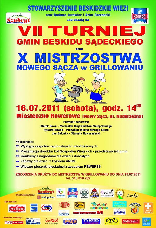 W najbliższą sobotę 16 lipca na Miasteczku Rowerowym po raz X odbędą się Mistrzostwa Nowego Sącza w Grillowaniu oraz VII Turniej Gim Beskidu Sądeckiego. Tradycyjnie piknik rodzinny połączony z zawodami grillowaniu organizuje Stowarzyszenie Beskidzkie Więzi oraz Barbara Jurowicz i Artur Czernecki. Patronat sprawują: Marszałek Marek Sowa, Prezydent Ryszard Nowak oraz Starosta Jan Golonka.