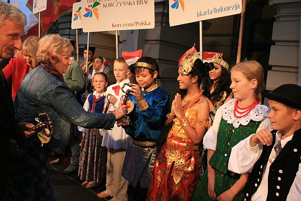 Aleksandra Bogucka-Szurmiak, jak co roku chciała podziękować bukietem kwiatów i dobrym słowem dyrekcji festiwalu, jednak została uprzedzona przez kapelę z Doliny Słomki. Do kwiatów i słów wdzięczności pani Aleksandra dołączyła zatem jeszcze taniec z dyrektorem Antonim Malczakiem. Gdy wybrzmiały lachowskie nuty, podziękowała w imieniu Rady Artystycznej całej dyrekcji, a szczególnie dyrektorowi, który od 19 lat wciąż tworzy i ulepsza rzeczywistość festiwalową oraz Małgorzacie Kalarus za trudną codzienność jej pracy. Pogratulowała stworzenia 19-letniej tradycji. Tradycji spotkań, radości i tego, że możemy dotknąć kultury obcych krajów, a dzieci mogą się poznawać nawet nie znając języka. Życzyła jeszcze wielu lat istnienia festiwalu.
