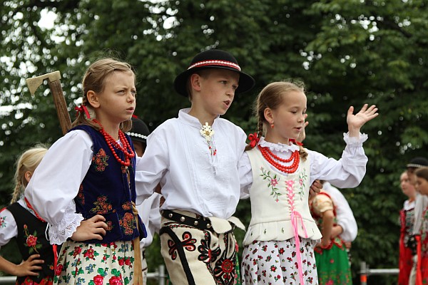 Dzieci ćwiczą podstawy tańca góralskiego i śpiewu pod kierunkiem państwa Czesławy i Stanisława Sobczyków.