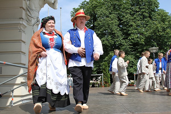 Na Festiwalu zespół zaprezentuje program „Na świętych Piotra i Pawła”. Dzieci pod opieką śpiącego na ławie ojca, bawią się w izbie. Z kościoła wraca matka. Zachęca dzieci do uporządkowania zabawek i zapowiada przyjście gości. Do izby przybiega chłopiec z sąsiedztwa, prosząc o pomoc przy ocieleniu krowy. Kobieta budzi męża, który wychodzi. Do izby wchodzą kolejni uczestnicy sumy odpustowej wraz z dziećmi. Dorośli są zajęci rozmową, dzieci rozpoczynają wspólną zabawę. Dorośli muszą odbyć próbę muzyki przed wieczorną potańcówką u wójta z okazji odpustu. Dzieci proszą o pozwolenie zatańczenia przy muzyce, na co otrzymują zgodę. Rozpoczynają się tańce. Widowisko kończy się podziękowaniem i wyjściem na nieszpory.
