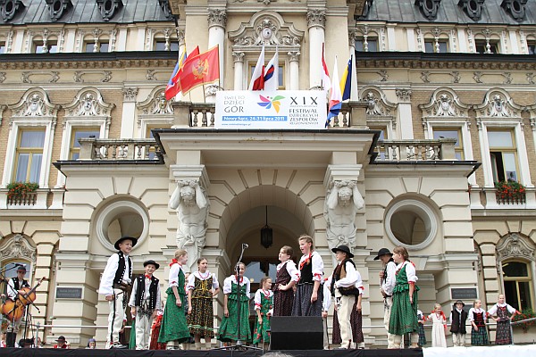Dzisiaj sądeckiej publiczności prezentują się zespoły: KINDERVOLKSTANZ UND SCHUHPLATTLERGRUPPE FÜRNITZ (Austria) oraz ORAWIANIE IM. HERÓDKA z Lipnicy Wielkiej (Polska).